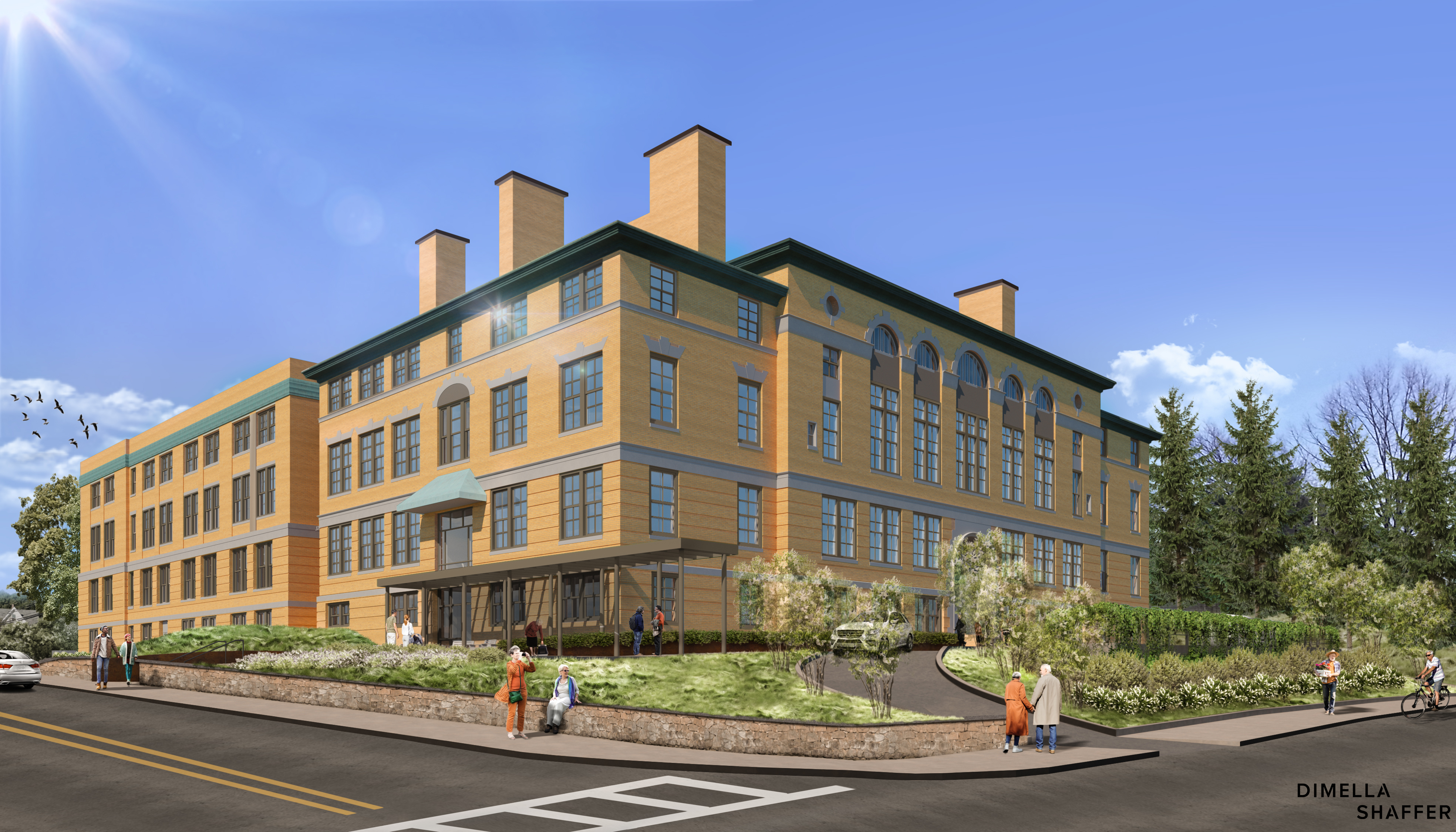 The William Barton Rogers Middle School in Hyde Park is no longer used as a school but is a perfect location for senior housing. It is in close proximity to many amenities with easy access to transit options. The building will be New England's first LGBTQ-friendly senior housing development, with 74 units available at a range of incomes from 30% AMI to 100% AMI. The development will offer a range of services to help residents successfully age in place and contribute to the Hyde Park community.