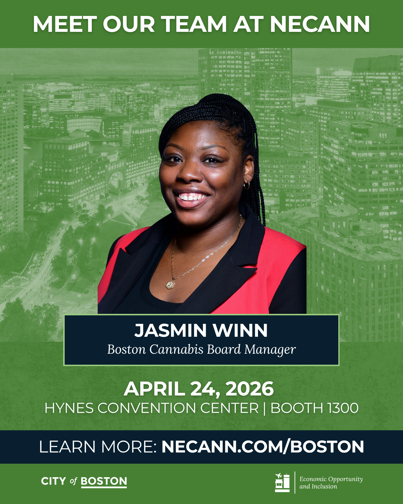 The Senior Cannabis Industry Manager, Cannabis Equity Program Manager and Boston Cannabis Board Manager will be at NECANN 2026! Visit us at Booth 1300, to say hello and pick up some of our new promotional materials.