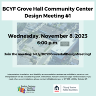 The meeting will explore explore options for the design of a new community center in the Grove Hall section of Dorchester.