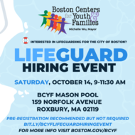The lifeguard hiring events will combine all the necessary steps to become a lifeguard for a City of Boston pool in one location.